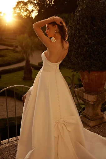 Strapless Mikado A-Line Wedding Dress with Pleated Bodice and Bow