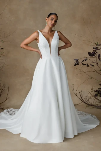 Soft Satin Wedding Dress with Plunging V-Neckline and V-Back