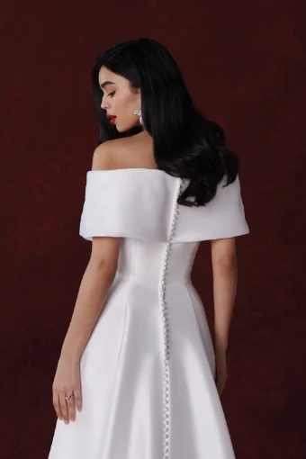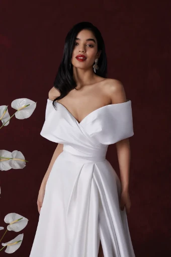 A-Line Wedding Dress with Off The Shoulder Cuff and Skirt Slit