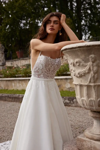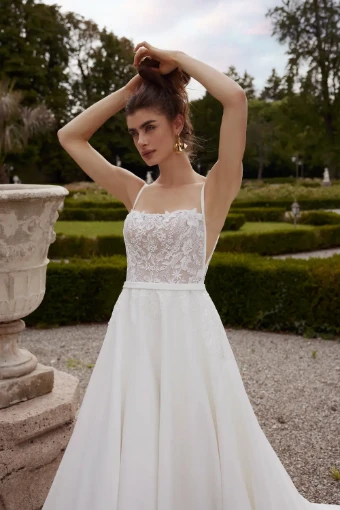 Satin A-Line Gown with Square Neckline and Lace Bodice