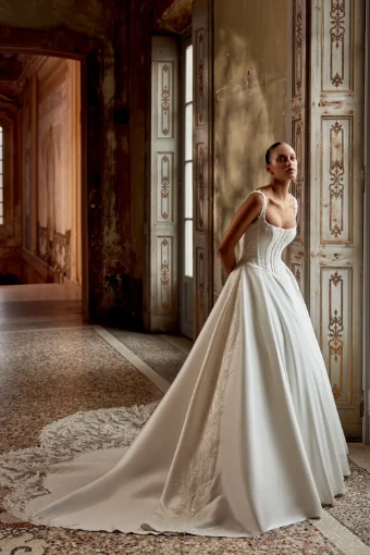 Stretch Mikado Ball Gown with Corset Bodice & Basque Waist