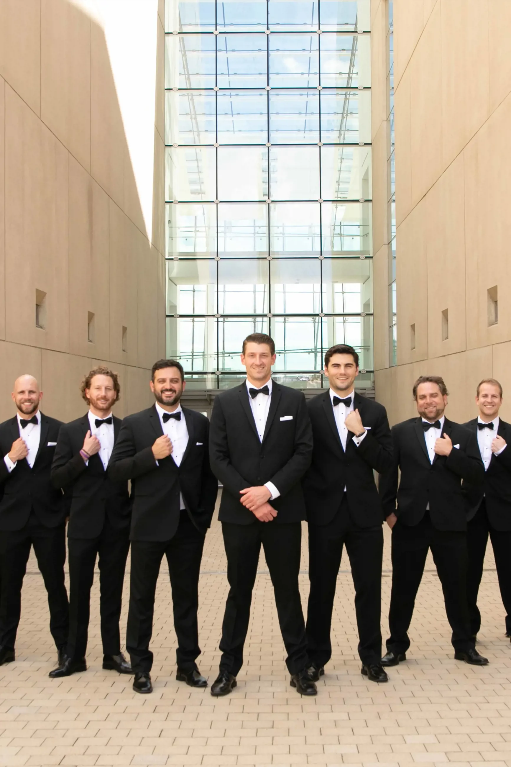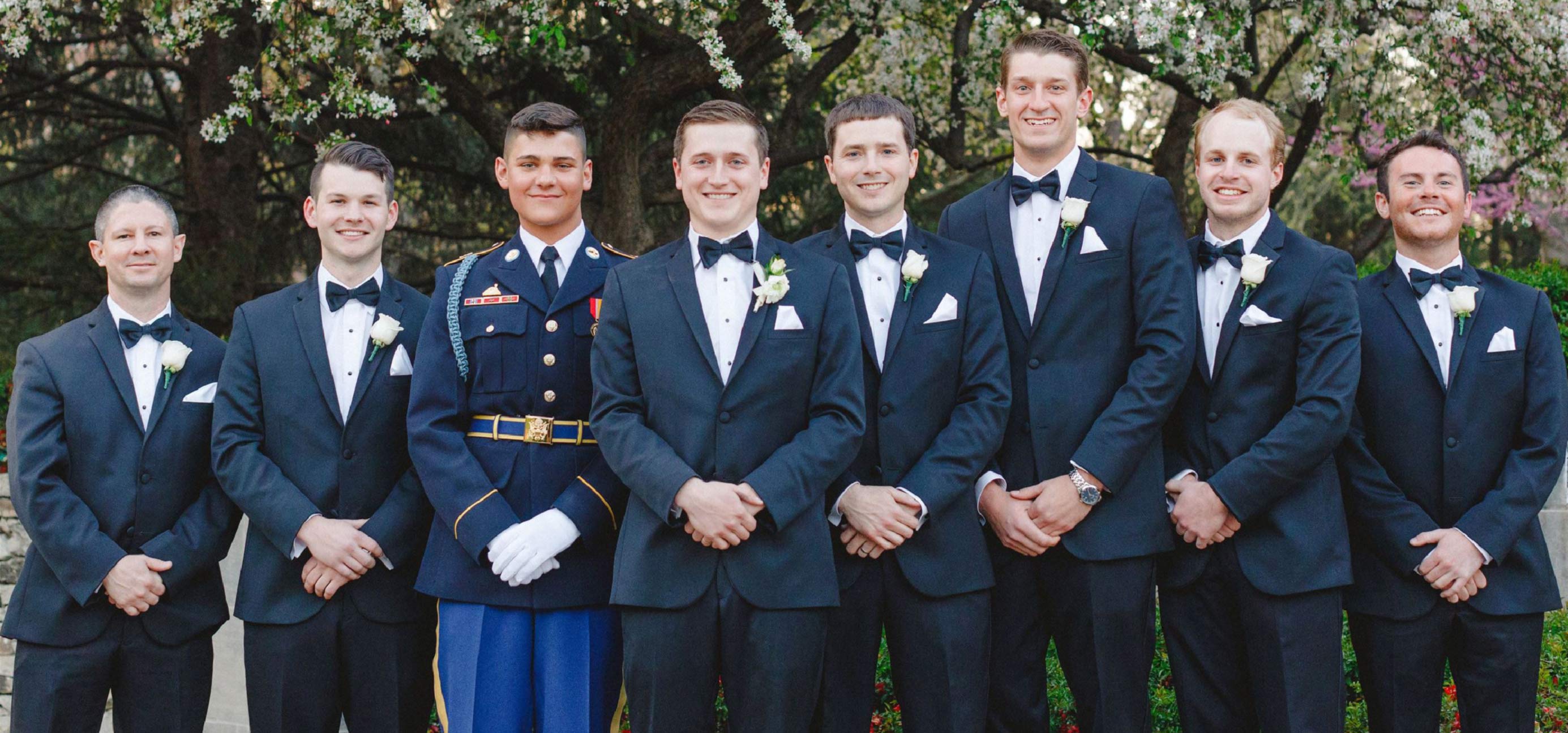 The rest of the groomsmen have the option to be measured at our store or send in their measurements if they live out of town.